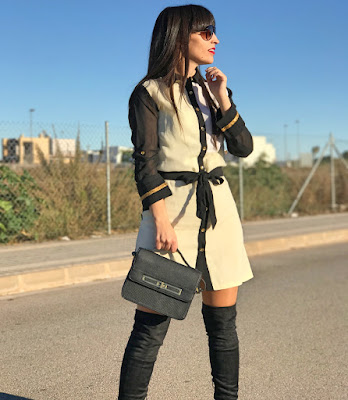 Este vestido camisero es uno de los más exquisitos que he tenido ya que el tejido es muy suave y al mismo tiempo acogedor, el diseño es muy original con diferentes colores y los detalles dorados recuerdan a una casaca militar. sin duda esta pieza es todo un acierto para destacar y además muy a tener en cuenta como fondo de armario.